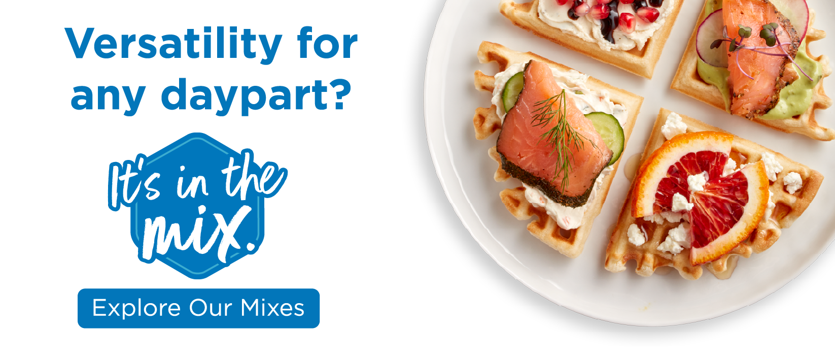 Find new back-of-the-house efficiencies and create more front-of-house smiles with our full range of complete baking mixes. Whether you're aiming for fluffy pancakes at breakfast or mouthwatering chicken and waffles at dinner — it's never been easier to make every daypart delicious.