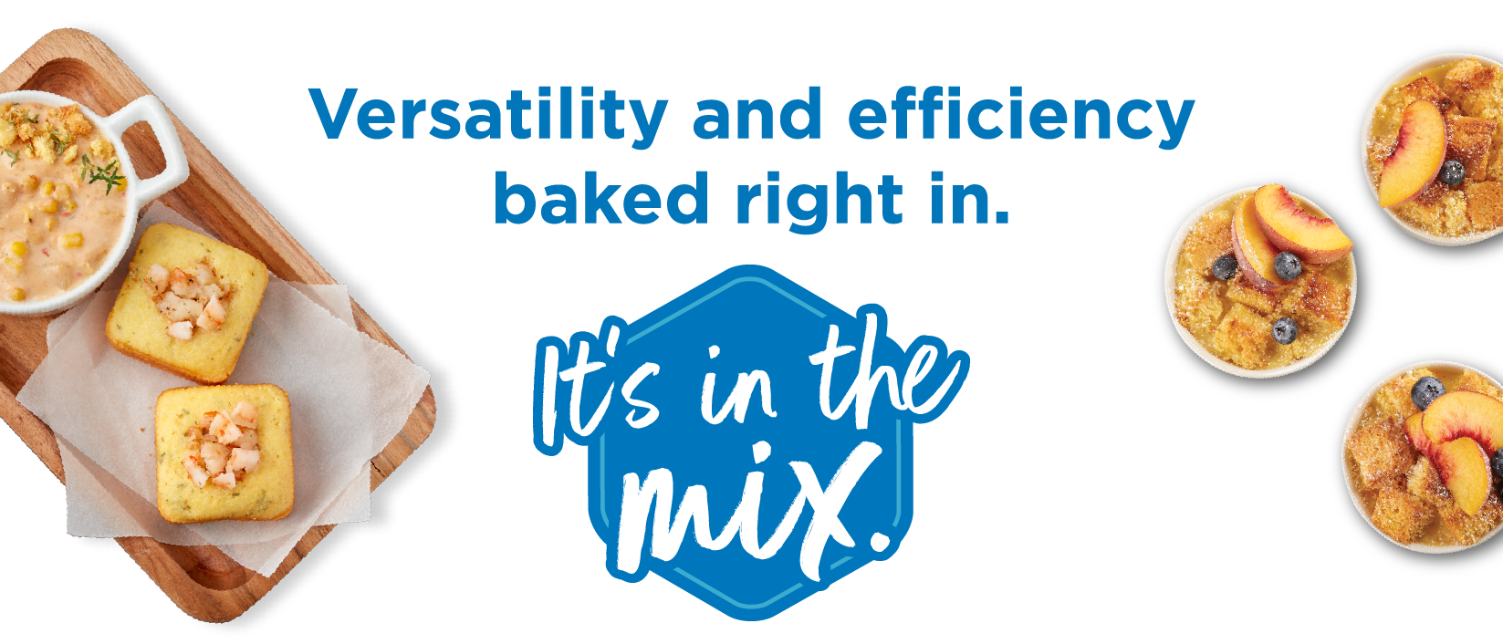 We offer a robust variety of products that deliver the savory, scratch-baked taste consumers love. The complete baking mixes are formulated for speed and stress-free prep, while minimizing waste as you create unique menu items.